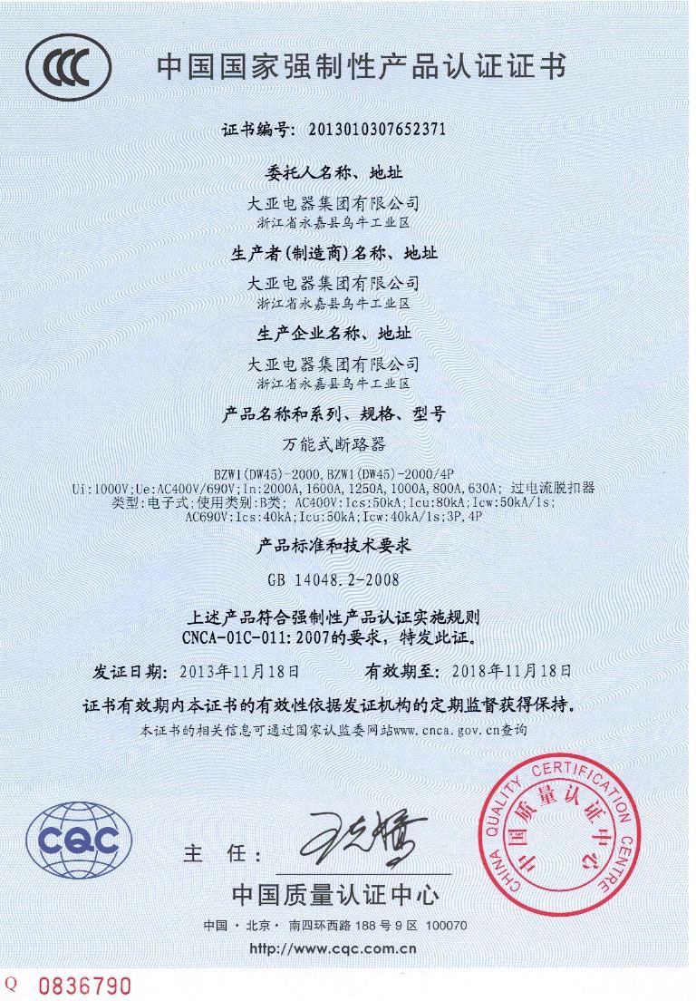 BZW1(DW45)-2000 3C證書