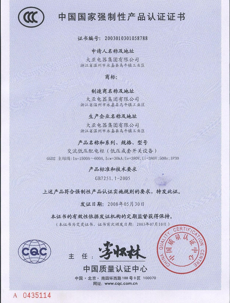 BZM1(DYCM1)-630 3C證書