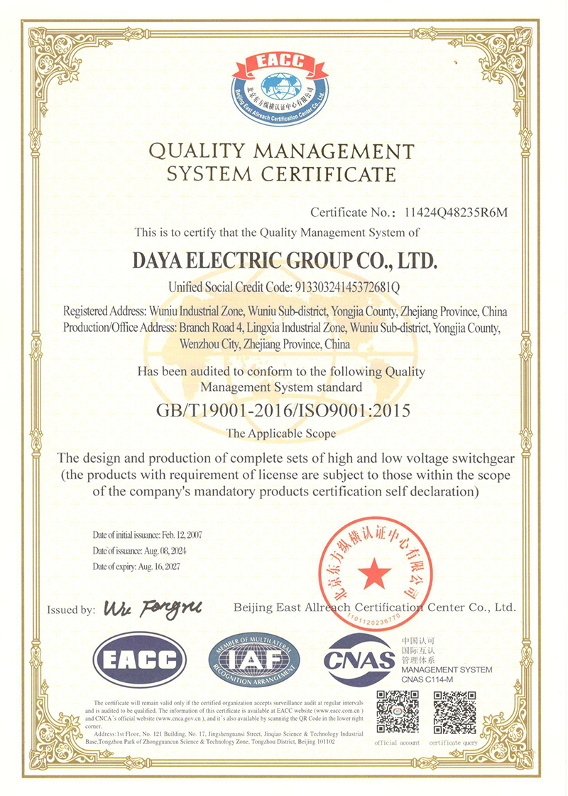 Certificate of Conformity for Rectification of Production Order of High Voltage Switchgear