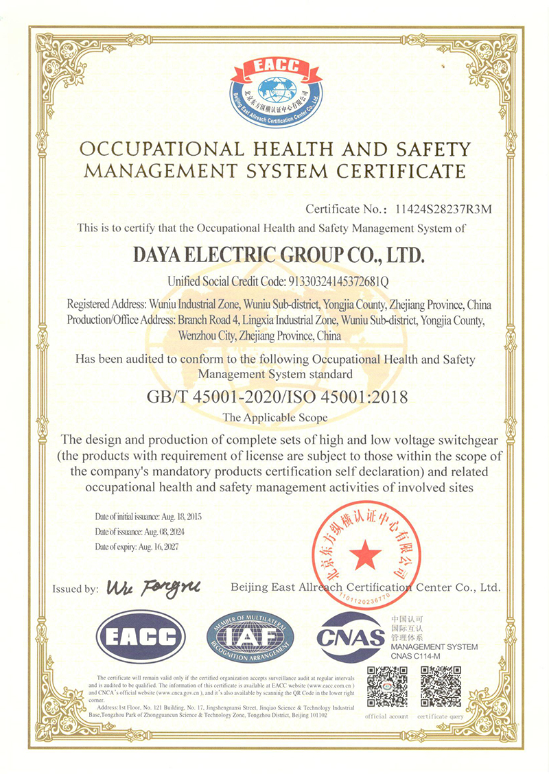 OCCUPATIONAL HEALTH AND SAFETYMANAGEMENT SYSTEM CERTIFICA