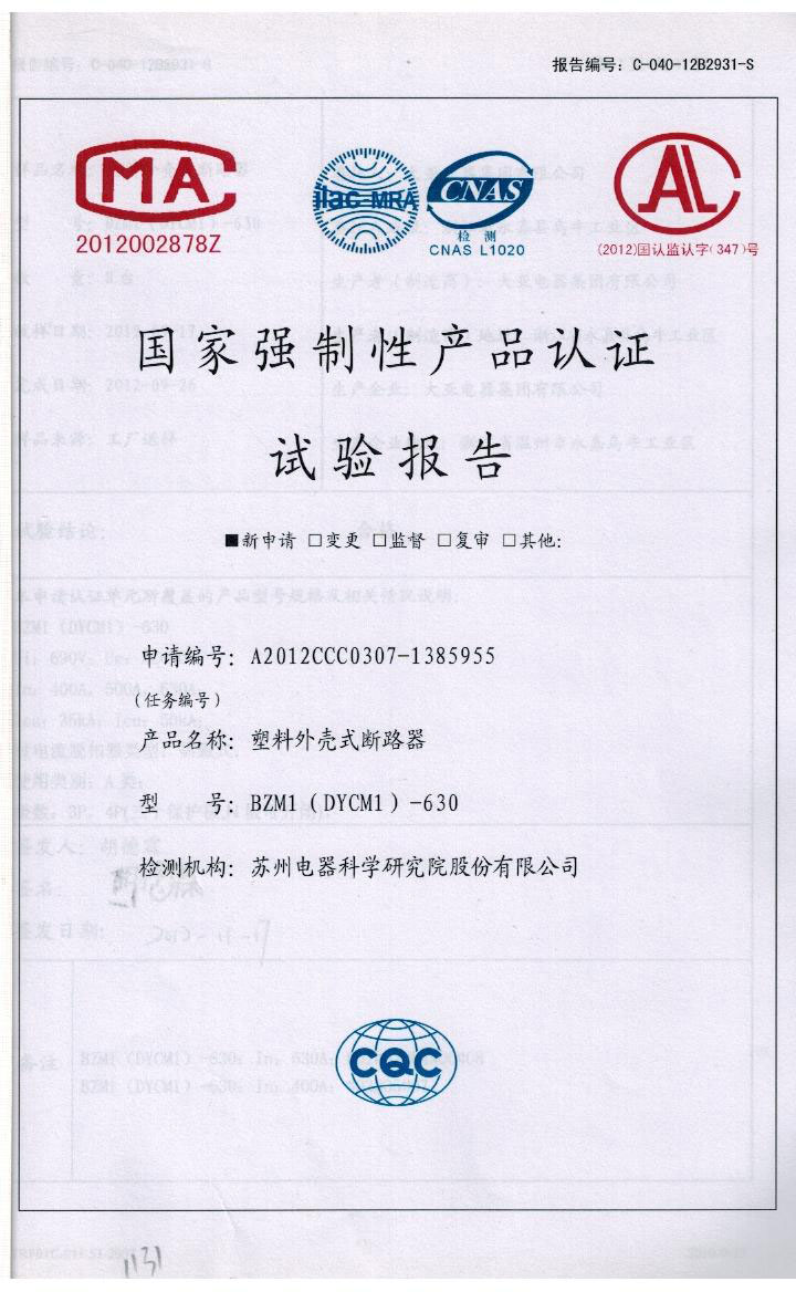 BZM1(DYCM1)-630試驗(yàn)報(bào)告