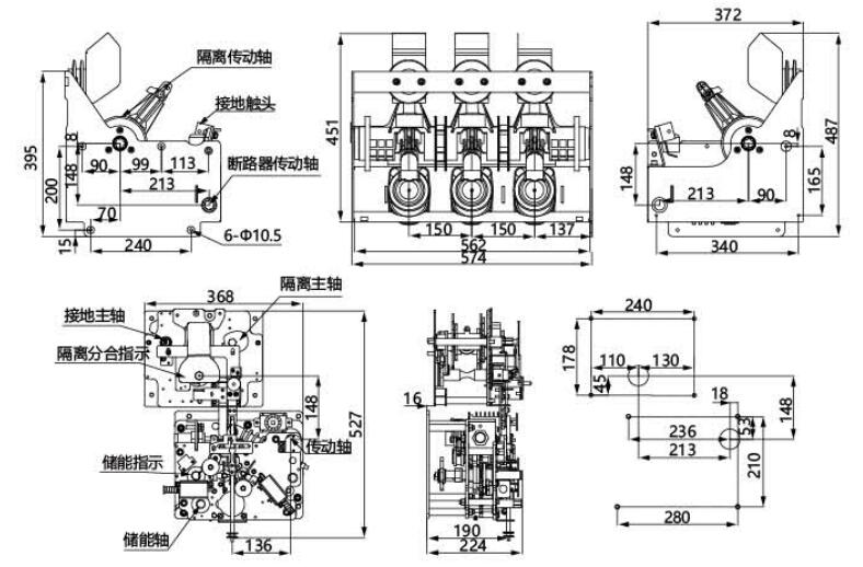 產(chǎn)品初始狀態(tài):斷路器處于合閘位置,隔離開關(guān)處于分閘位置,接地開關(guān)處于合閘位置。