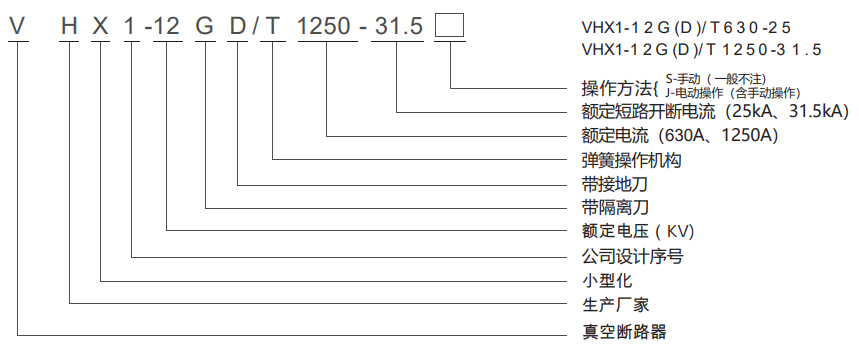 VHX1-12戶內高壓交流真空斷路器的每一相所有帶電零部件均由單個絕緣套管支撐,集隔離開關、真空斷路器、接地開關為一體,結構緊湊。隔離開關的上出線與母線相連,隔離開關刀閘的轉動端是真空滅弧室的上靜觸頭,真空滅弧室的下出線端相當于接地開關的靜觸頭,有效地節(jié)約了在開關柜內的寶貴空間。開關柜母線室與電纜室通過安裝在絕緣套管中間的金屬隔板隔開。操動機構與本體一體構成側裝式結構,具有手動和電動兩用操作方式,“五防”聯(lián)鎖機構集成在操作機構箱內。